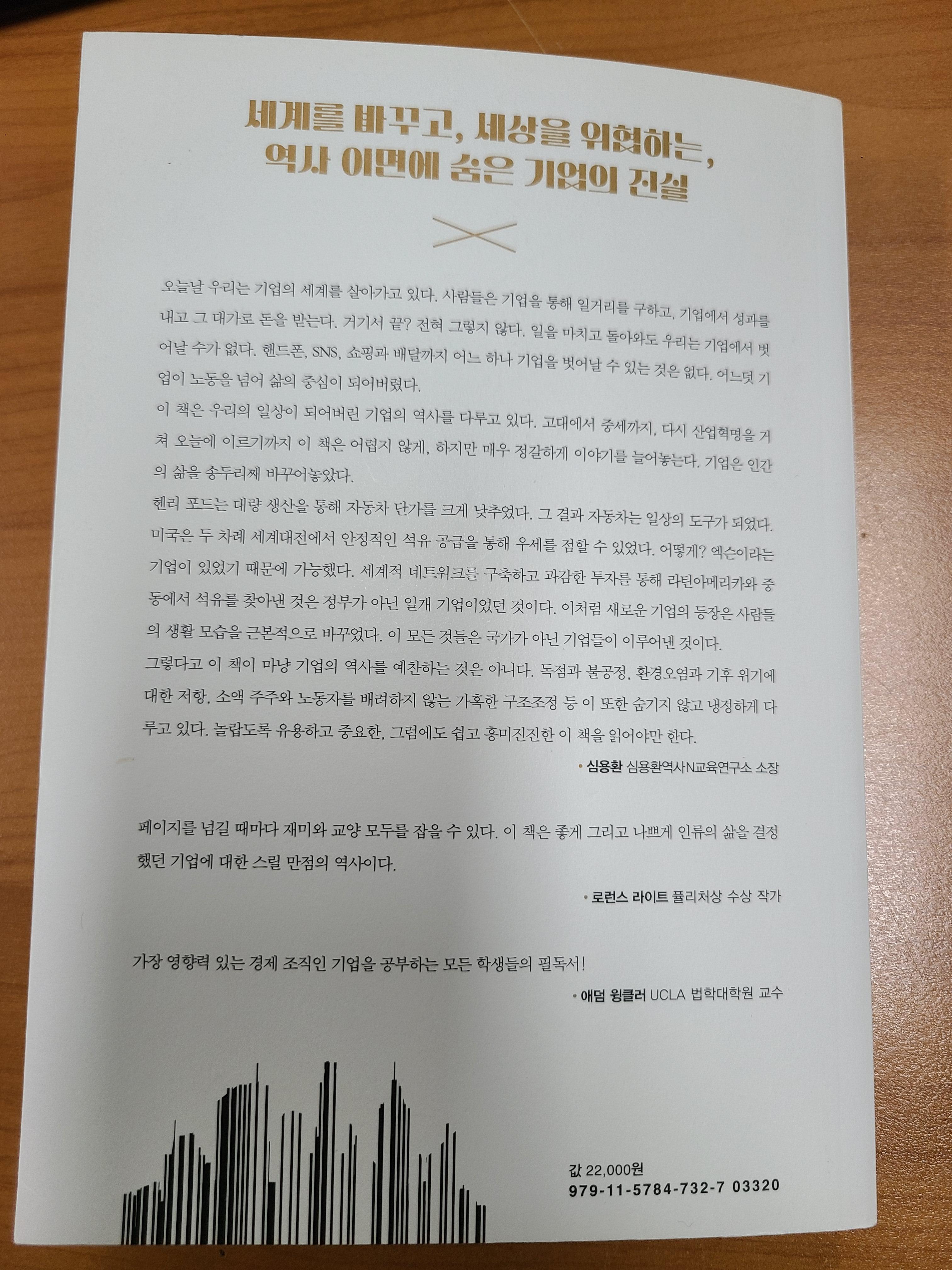 고대 로마부터 현재의 기업 중에서 세계사에 획을 그을만한 8개의 기업에 대한 스토리와 기업의 어떻게 흥하고 망하고 또 살아남았는지에 대해서 자세히 설명을 해 줍니다. 그리고 작가가 생각하는 건강한 기업에 대해서 이야기를 해줍니다.